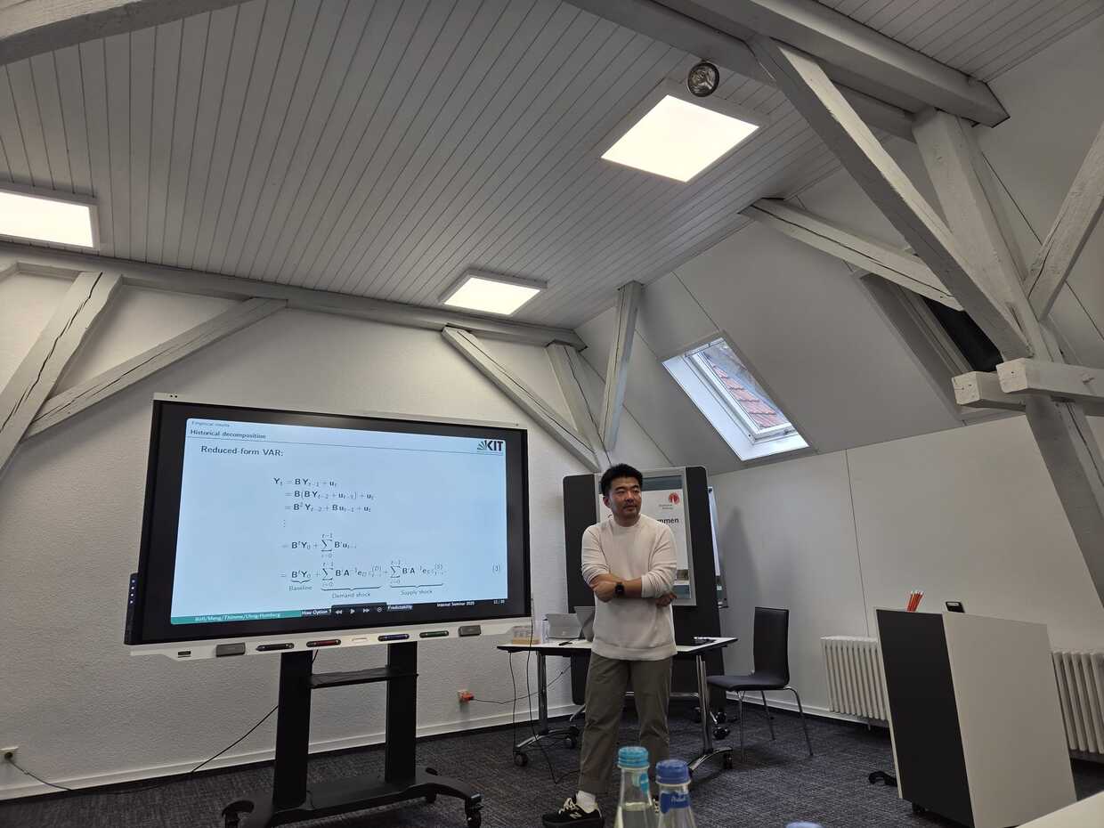 Am zweiten Tag eröffneten B02 und A21 die Sitzungen mit Einblicken in ökonometrische Ansätze und die Rolle der Geldpolitik im Asset Pricing. Danach stellte A14 eine Studie zu den Effekten des passiven Investierens auf Asset-Preise vor, gefolgt von A22, das sich mit Intermediärsfriktionen und Händlerpositionen auf den Finanzmärkten befasste. Das Seminar endete mit intensiven und konstruktiven Diskussionen, die die kooperative Forschungsarbeit innerhalb der Gruppe weiter stärkten.
